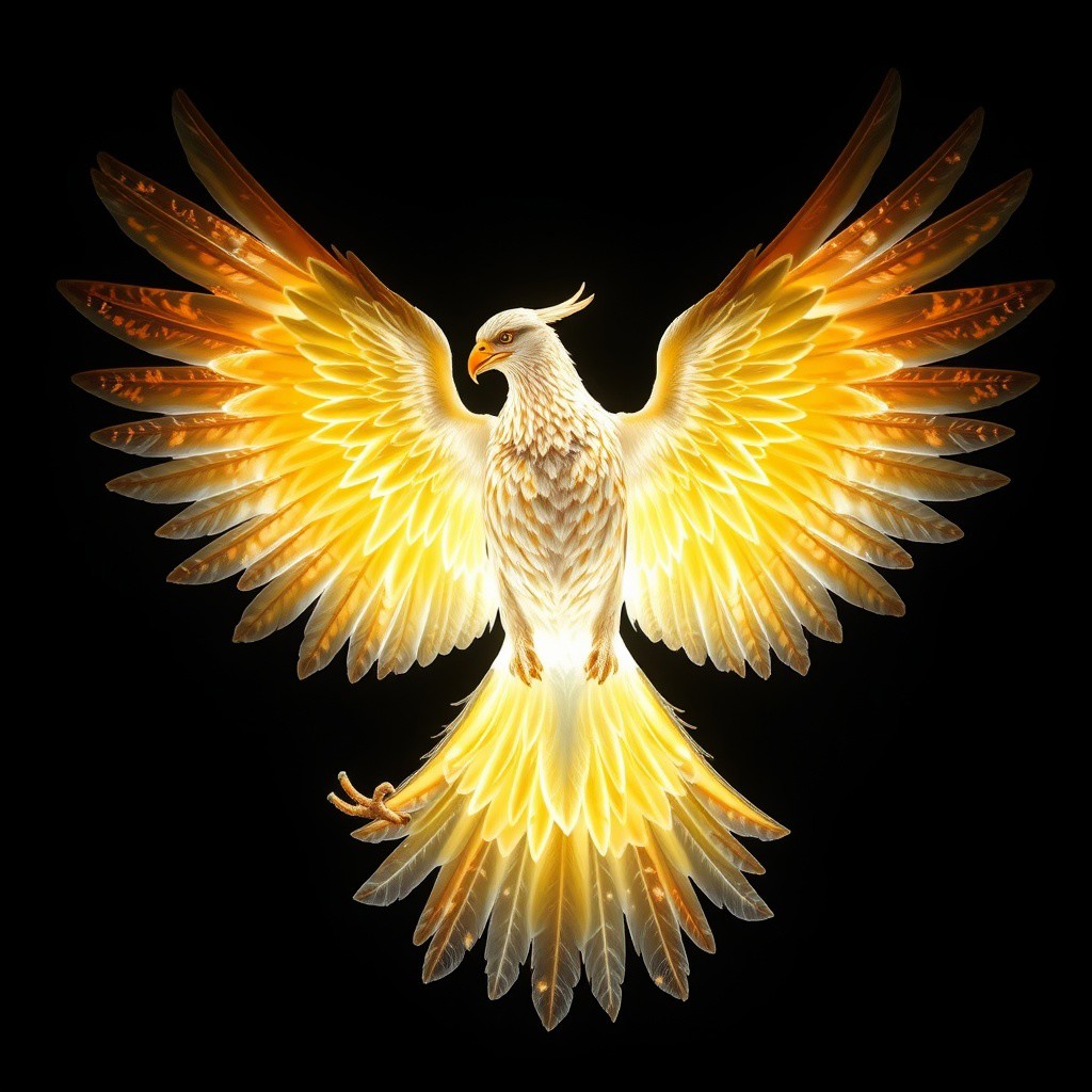 ave fenix, fondo oscuro, primer plano, alas desplegadas, iluminacion derecha, cuerpo de patatas, cortadas, rodajas,