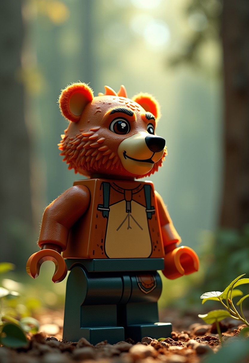 Lego furry grizzly bear, anthro male, looking at viewer, in the forest