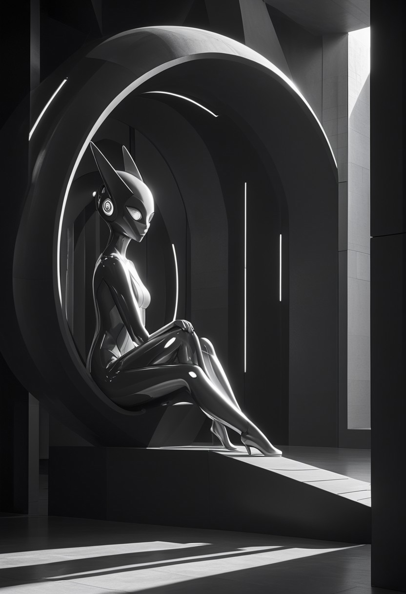 alienworld Whimsical Alien, Architectural photography, clean lines, geometric compositions, mastery of light and shadow, black and white imagery.