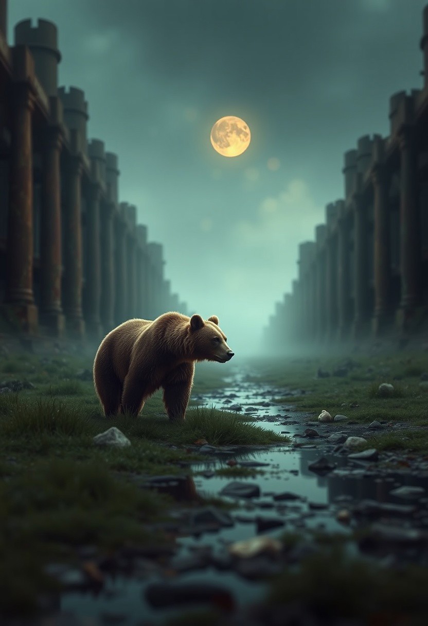 Generating images with Flux Schnell costs 20 buzz for a batch of 4, but you get 16 back from generator feedback. If you can make something publish-worthy out of 25 images, you'll break even and the extra buzz from comments is profit. You can write any nonsense in the prompt and then add a few tokens in the end to guide the style and contents. Use a thesaurus to find at least one fancy synonym for a common word, it seems to drive things in unusual directions., bear, high fantasy scifi, reverie, crepuscular, eerie lights, ruins, masterpiece, cinematic, nature, high contrast, reflection, bokeh, great composition, award winning