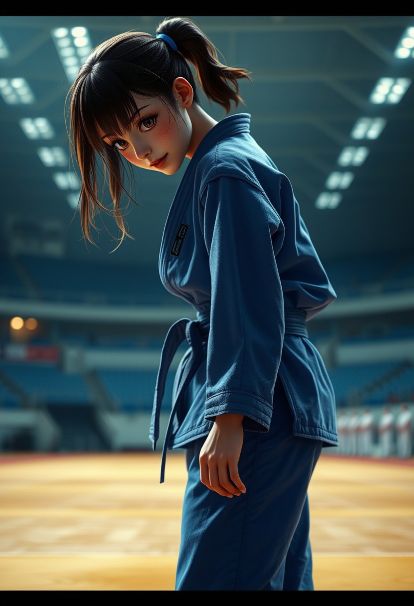 1girl, cinematic composition, wearing a blue judo uniform, judo pants, judo ground, stadium, sweating, standing, bend over, highly detailed, 4k resolution, ultrarealistic, real photo, detailed skin, photorealistic, high quality, sharp focus <lora:kw75_1996_gb_lora_v01:1> kw75