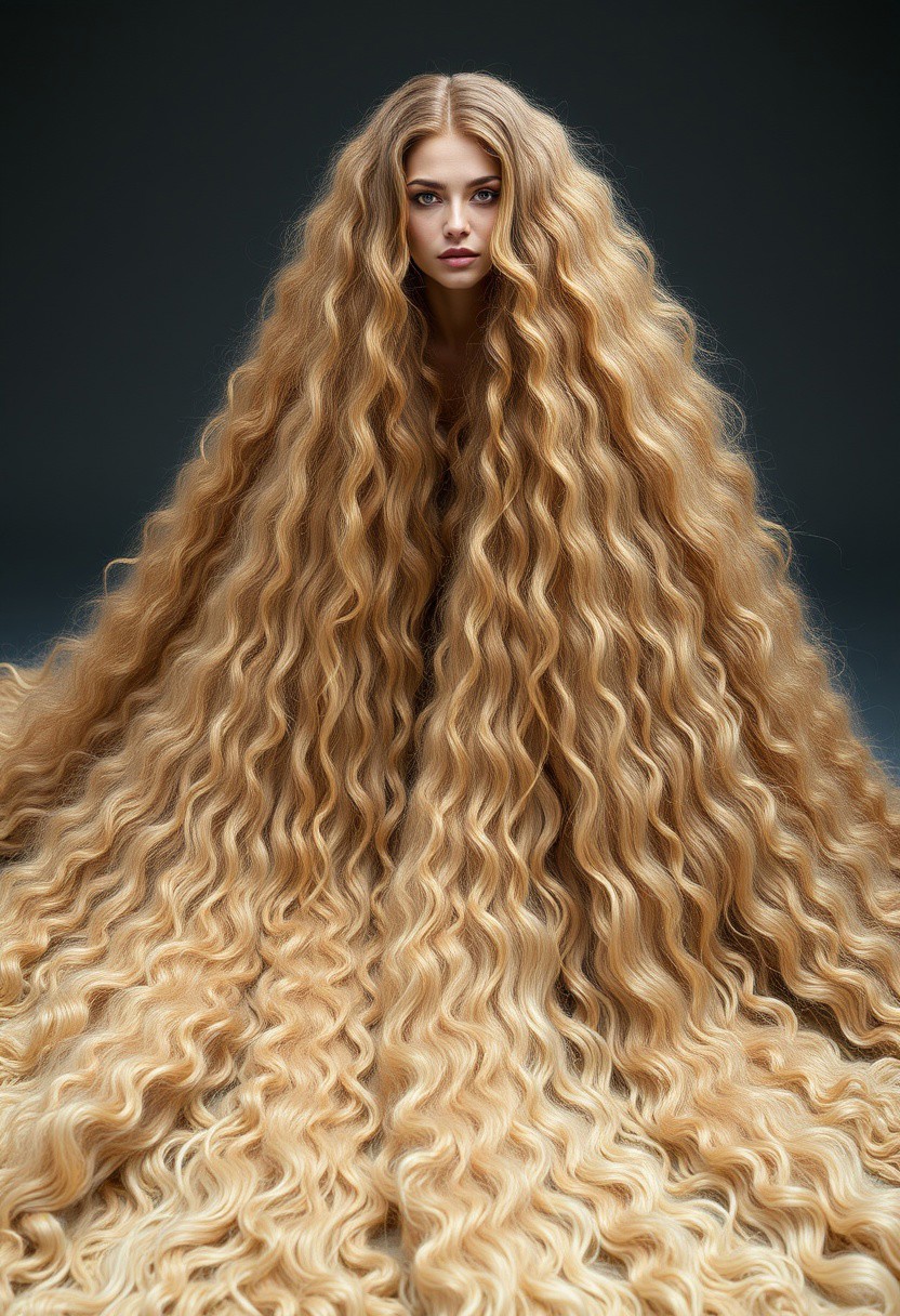 super long hair, absurdly long hair, absurd overabundance of extremely long hair in massive piles, voluminous floor length hair, thick hair, heavy hair, leonine hair, big hair, .Gorgeous woman with amazing extremely long hair that covers her arms, legs, shoulders, head, face, feet, and waist completely, very long hair, longest hair ever seen, lots of long hair on the ground, excessive long hair, fuzzy, furry, voluminous, gigantic, surrounded by piles of hair, so much fur, thick fur covers her skin, her fur is so thick, her fur is so thick and fuzzy, excess amounts of fur