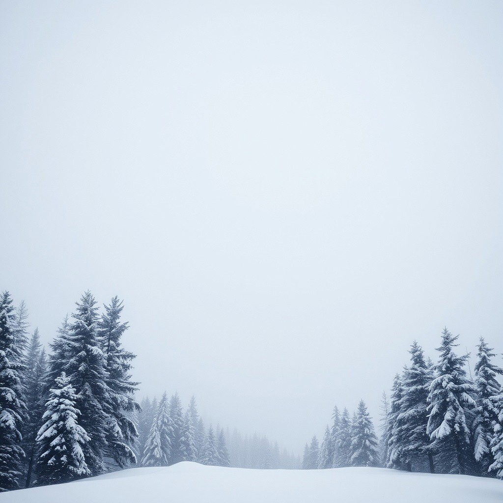 Snow, Heavy Ambient Blizzard, Total White Flurry Sky, Sky Towering Mountains, Tall Pine Trees, Glowing Abstract White, Monotone, Faded Out Images on Sides