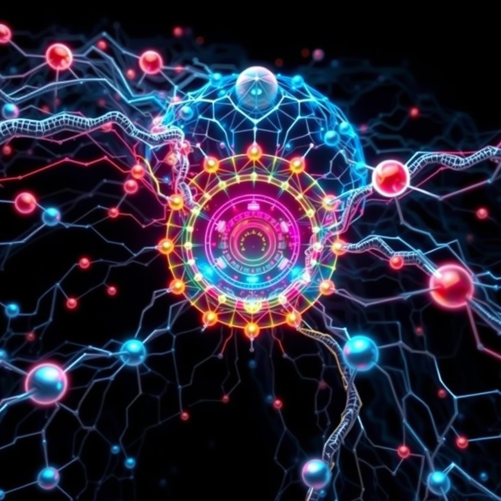 Layers Of Cybernetic Neurons, Scientific 4.0, Dimensional Rift, Abstract Diagram of Complex Supernatural Mathematics, Colorful 22 Step Spirit World, Pure Energy Balls, High Contrast Melding
