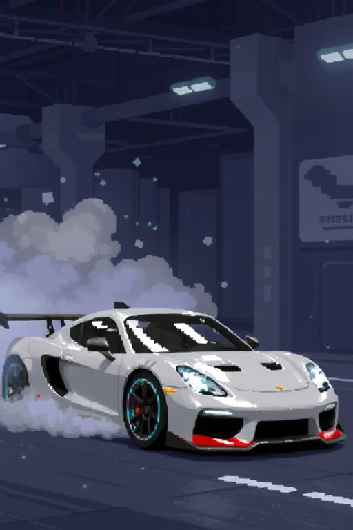 A sport car in a dynamic scene, pixel art style, clear drawn in big pixels very well aligned, rich showcase, award-winning craftsmanship. UHD resolution enhances the dynamic, impactful pose for a striking, lifelike result.