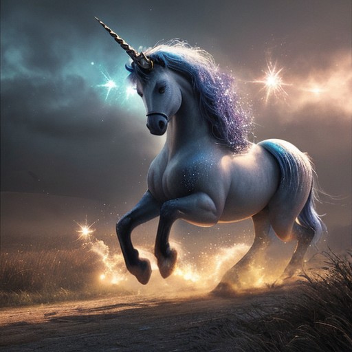 3d, Galactic, clumsy baby unicorn covered in sparkles)) attempting to prance majestically but keeps tripping, leaving behind glitter explosions. Atmospheric, moody, mystical, rustic. <lora:artfully4QUAD_SDXL_V1> art4qd