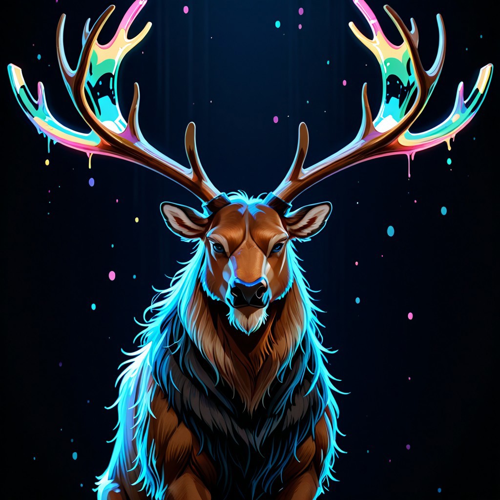 Majestic stag with ((huge antlers made of tiny neon glass filaments)), <lora:World_of_Glass_Filament:0.81> , dark background, highland glade