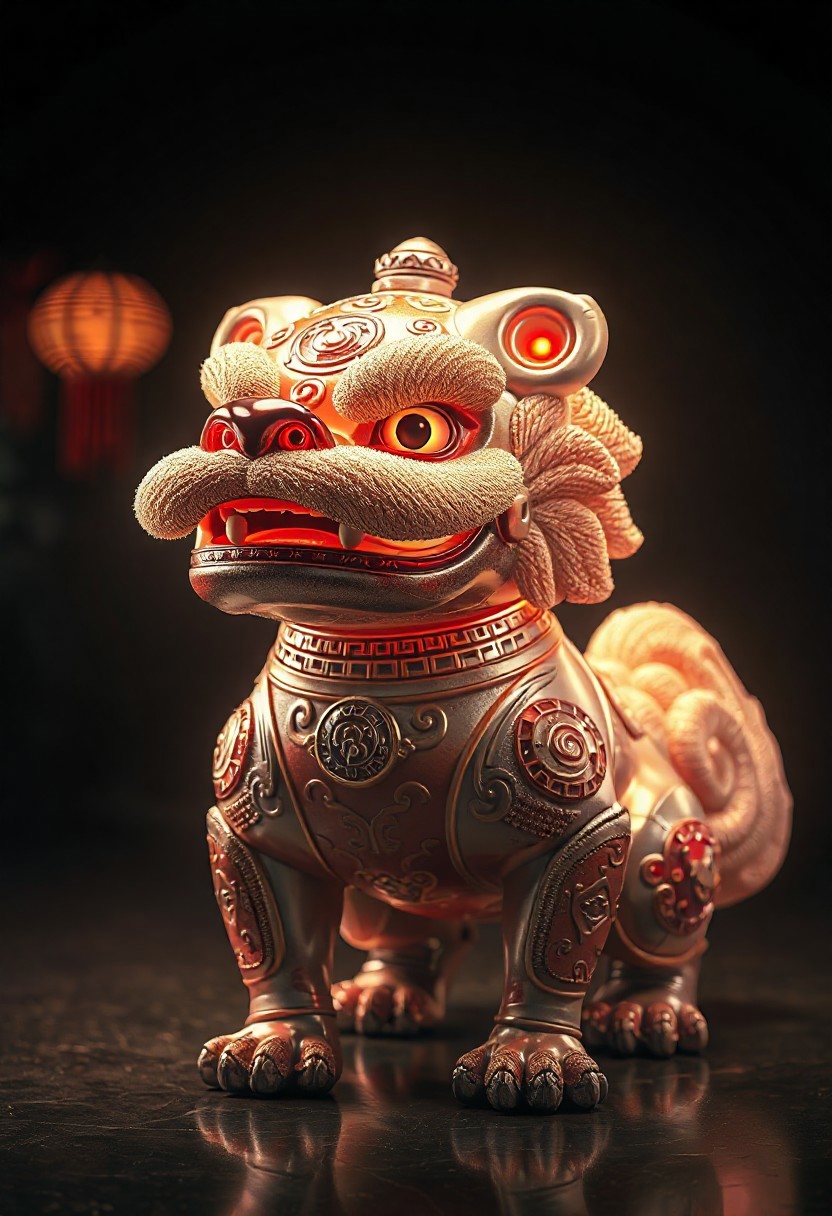masterpiece, best quality, amazing quality, very aesthetic, high resolution, ultra-detailed, absurdres, newest, photorealistic details, volumetric lighting, foo dog with a spherical head and no body
