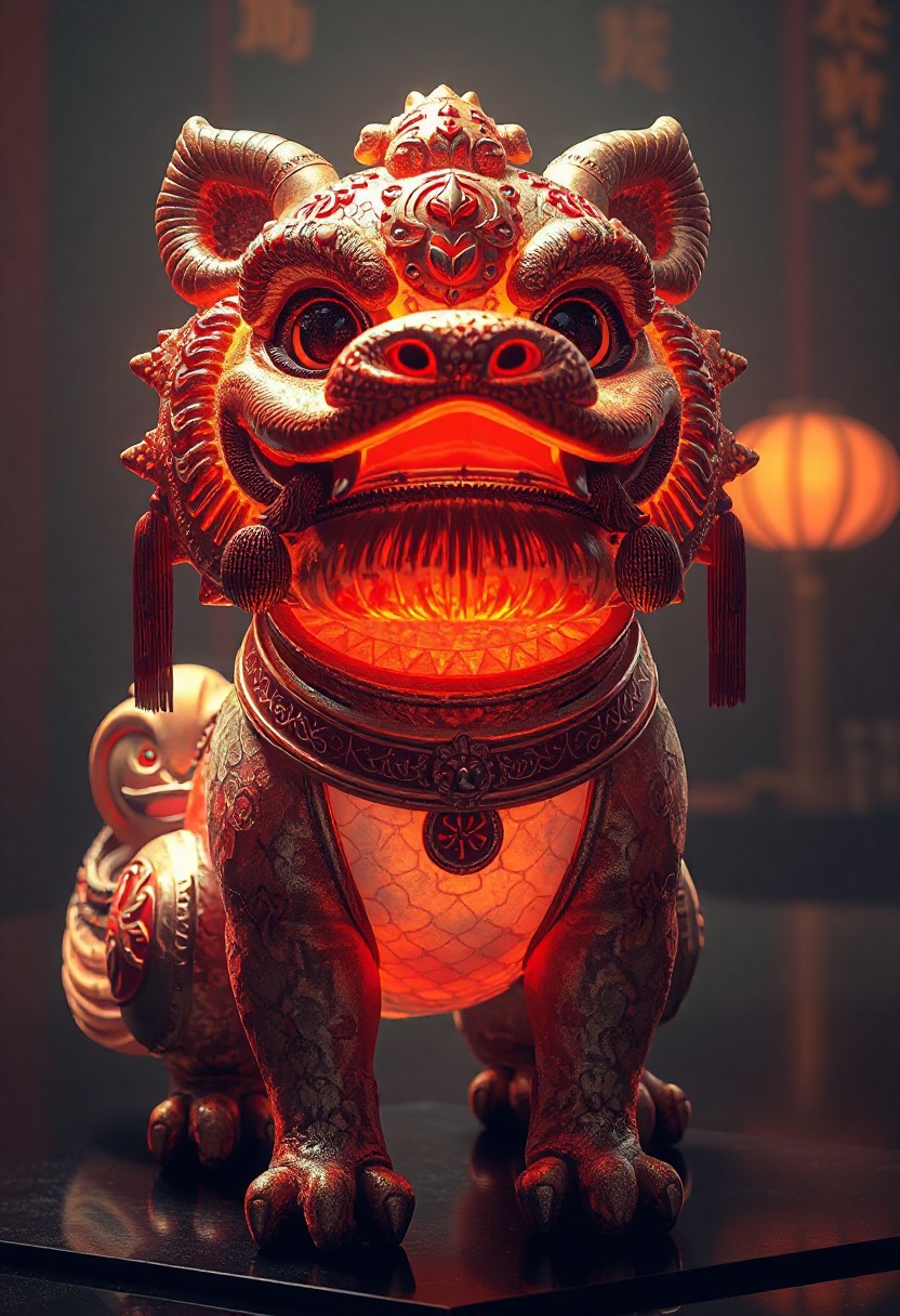 masterpiece, best quality, amazing quality, very aesthetic, high resolution, ultra-detailed, absurdres, newest, photorealistic details, volumetric lighting, foo dog with a spherical head and no body