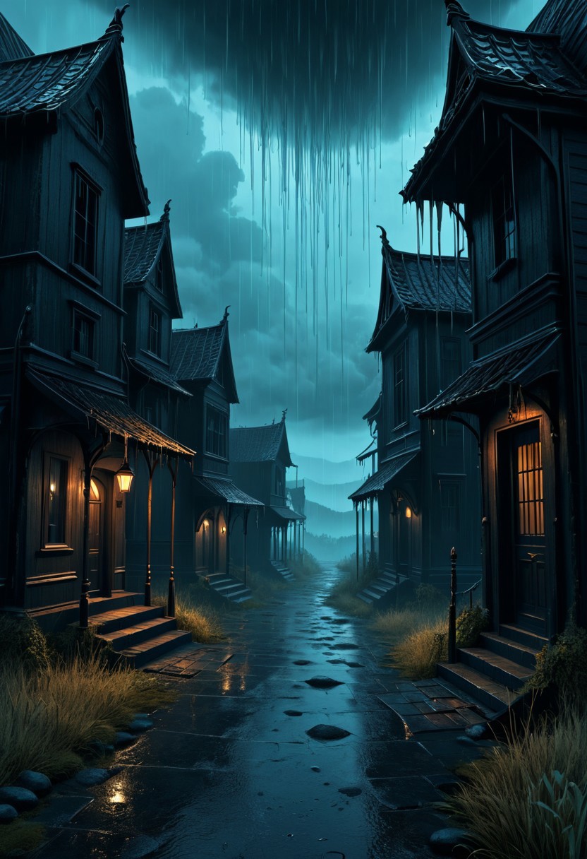 SimpleIllustration The sky is crying., dark fantasy art, haunting atmospheres, detailed textures, macabre themes