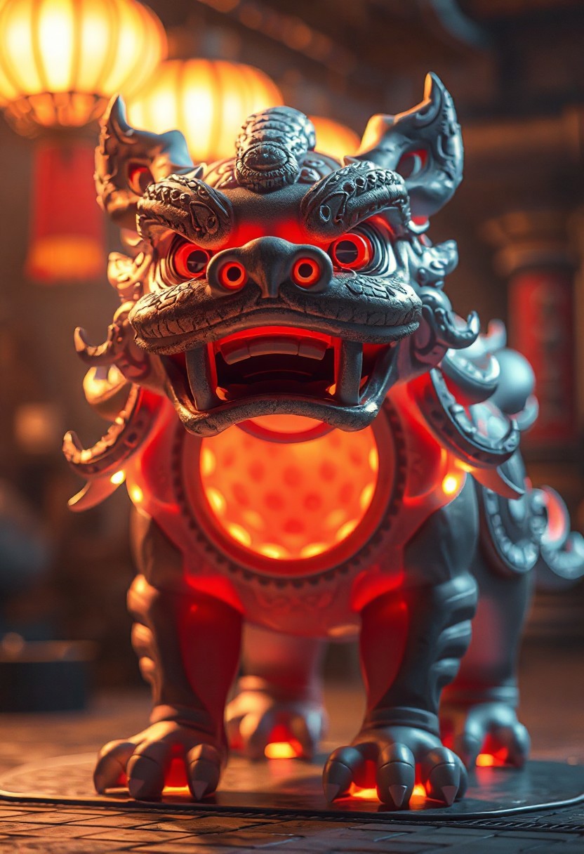 masterpiece, best quality, amazing quality, very aesthetic, high resolution, ultra-detailed, absurdres, newest, photorealistic details, volumetric lighting, foo dog with a spherical head and no body, large gapping maw, subsurface, glowing with inner light