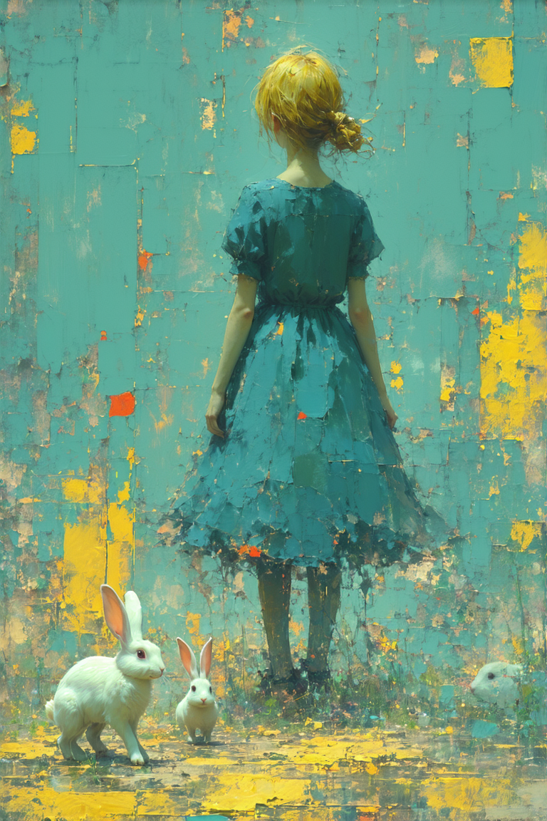abstract photo on the theme: makes you larger ,mother gives you,Alice,ten feet tall, chasing rabbits,