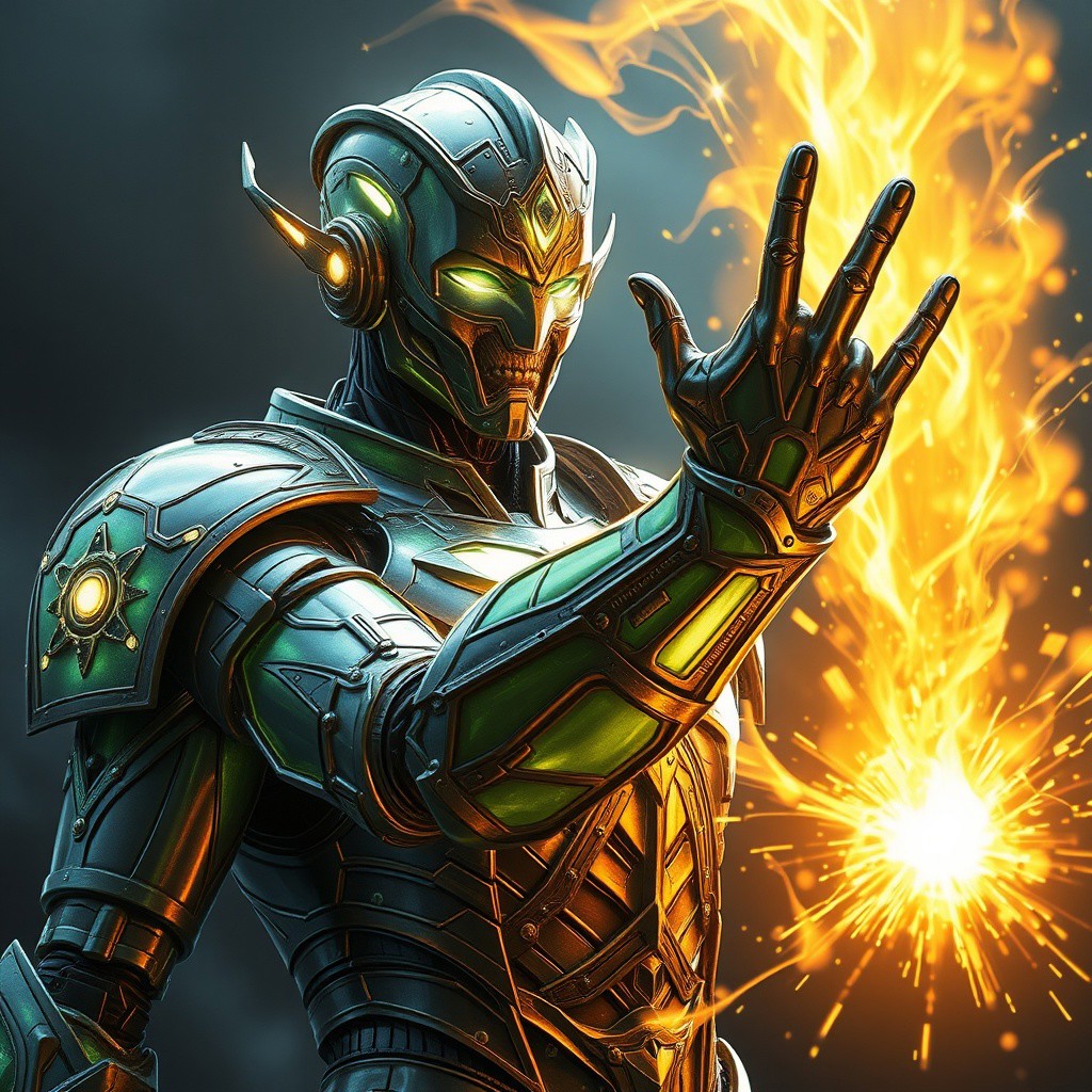 Masterpiece, a thallium/humanoid, 32k, 16k, 8k, cinematic art, realistic art, detail, wearing Mercury like bioluminescence translucent armor, it charging a energy blast to his hand that looks like a masterpiece chromium/radium energy attack,