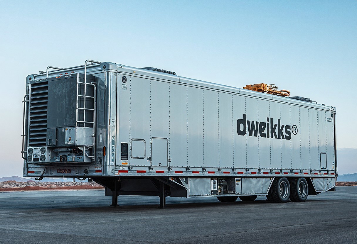 1 vehicle, cyberpunk oversize industrial trailer. Logo label "BDwerks®" written on the side nothing else written.