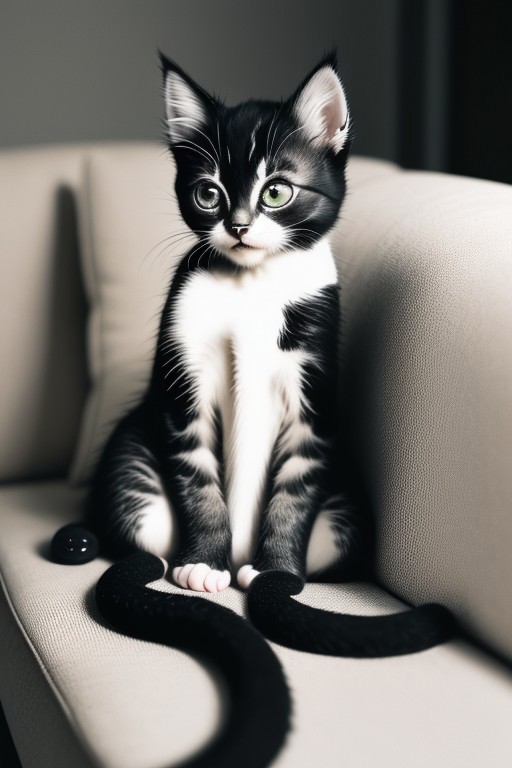 (archival preset) in a cosy room on a cosy white/beige sofa, a cute fluffy black kitten hybrid with 8 fluffy octopuss legs, happy cute, Shot on Eastmann 100t film, the image quality is grainy and high contrast, with shallow depth of field and cinematic look, epic and dramatic shot, very nostalgic.