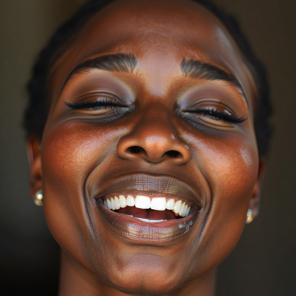 Beautiful African woman with nostrils wide, face flushed, mouth slightly open, head tilted back a bit, eyes half closed, pleased, aroused, head shot