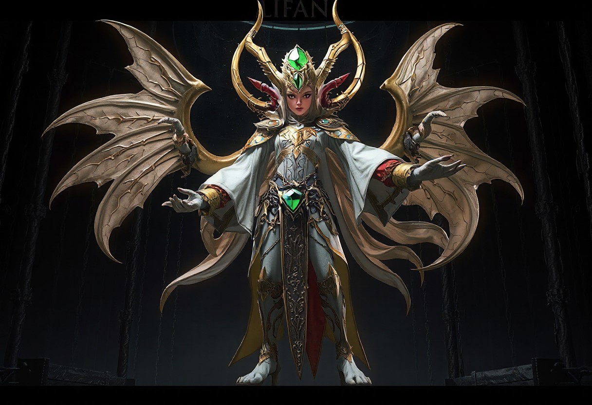 Discover a mystical, powerful elf, standing proudly against a dark Nightmare's Steelcage. Dressed in white with golden and red accents, the elf's head dons a large green gem. With multiple arms and legs, the intricately patterned body exudes both functionality and artistry. The 4K, highly detailed is ready for action. This breathtaking, concept art embodies vibrant colors, dynamic action pose, and captivating lighting. Experience an epic, colorful environment with sharp lines, inspired by artists like Alphonse Mucha, Wlop, and Greg Rutkowski. This masterpiece, rendered with Octane, is ready to trend on ArtstationHQ.