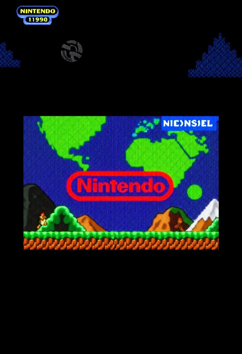 logo nintendo red letter in middle of screen back ground world of 1990 video game