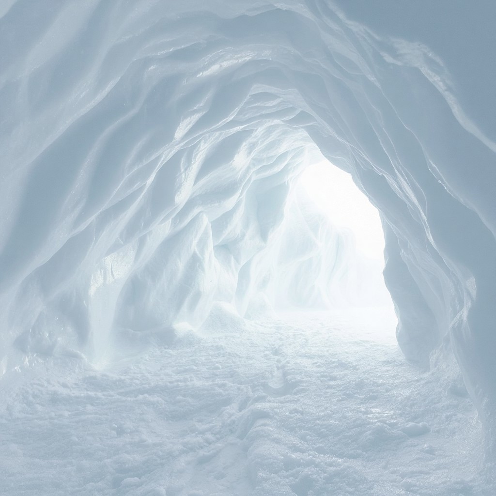 Frozen Cave, Shimmering Quiet Arctic Chill, Saturated Light, White Flurry, Dreary Cold, Bright White, Isolated