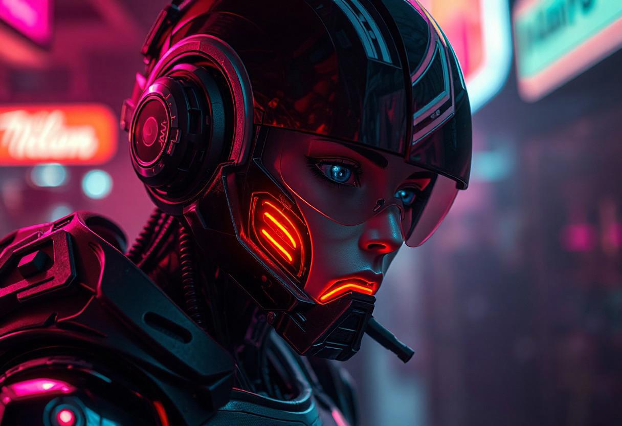 neon-lit cyborg, IMG_8923.CR2, lightroom preset VSCO A6, ISO 100, f/2.8, 1/250s, hyper-detailed, 8K, --neg blurry, low quality, oversaturated, cartoonish sampling steps: 30 CFG scale: 7