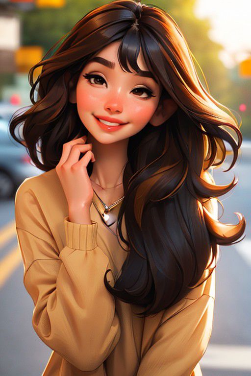 sam yang, 1girl, bangs, black hair, black shirt, blurry, blurry background, bokeh, brown eyes, brown hair, closed mouth, day, depth of field, hair between eyes, half-closed eyes, head tilt, jewelry, lips, long hair, long sleeves, looking at viewer, multicolored hair, necklace, nose, outdoors, shirt, smile, solo, thick eyebrows, two-tone hair, upper body , ((masterpiece)) <lora:sam_yang_offset:1>