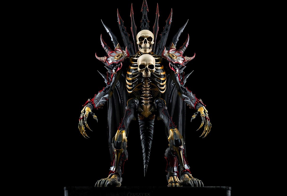 "A hyperdetailed cinematic concept art of a grimdark monster humanoid standing tall against a Nightmare Throne black background. The figure is composed of a skeletal structure, adorned with intricately designed red and gold armor covering its torso and arms, featuring a prominent skull on the chest. The monster’s arms are outstretched, legs slightly spread, and head turned to the left, gazing into the distance, exuding readiness and eerie dominance. Rendered in Unreal Engine 5, with 8K resolution, lifelike details, sharp lines, and stunning, harmonious colors. The composition is impeccable, with captivating lighting, balanced editing, and a creative angle, trending on ArtStation, CGSociety, and Pixiv. Inspired by the styles of Raphael, Houdini, and Grammer Effect, with vivid emotions and a powerful message. The monster humanoid’s design showcases handcrafted precision and a sense of otherworldly menace, making it the undeniable focal point of the image. Cinematic composition, featured on ArtStationHQ and Pixiv, evoking a high-stakes, dark fantasy atmosphere."