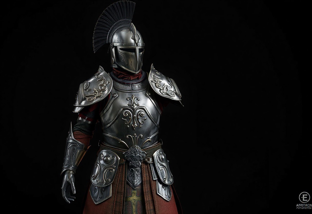 Created as premium AAA game asset or museum visualization piece. Currently trending on ArtStation HQ for its perfect balance of historical accuracy and next-gen rendering techniques. Ideal for armor design portfolios or cinematic production stills."