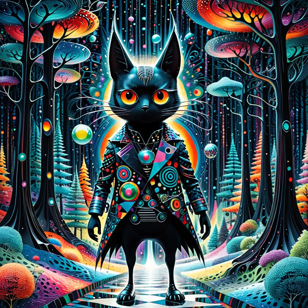 Fractangles, made out of fractangles, Studio Ghibli Dark Fairytale, The terminator, whimsical folk art in the style of Julia pott Quentin Black Kandinsky , flat colours