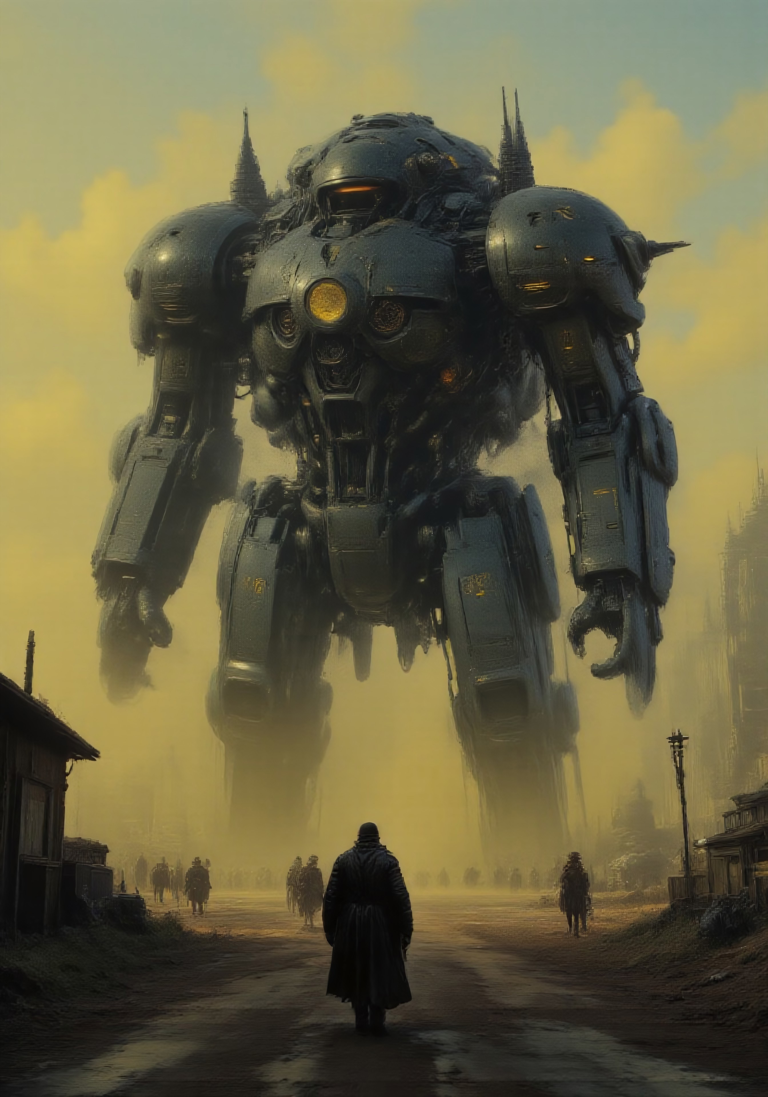 highest details, ultra hyper realism. highly detailed and realistic. intricate and highly professional artwork, an absolute masterpiece. Brutalist Steampunk, gothic fantasy, moody lighting, rusted metal tones, ash and ember palette. Wide view, futuristic, Sci-fi cinematic scene. Rural Wasteland national background. Armored Steampunk Mech driving through, with guns and turrets. wandering through, Golden runes and cybernectic line decorate, Grimmdark, mechanical. (Ultra-realistic, 32k, Masterpiece, High Quality, Detailed Realistic Background, Official Art, Realistic Lighting, filmfotos, film grain, reversal film photography).