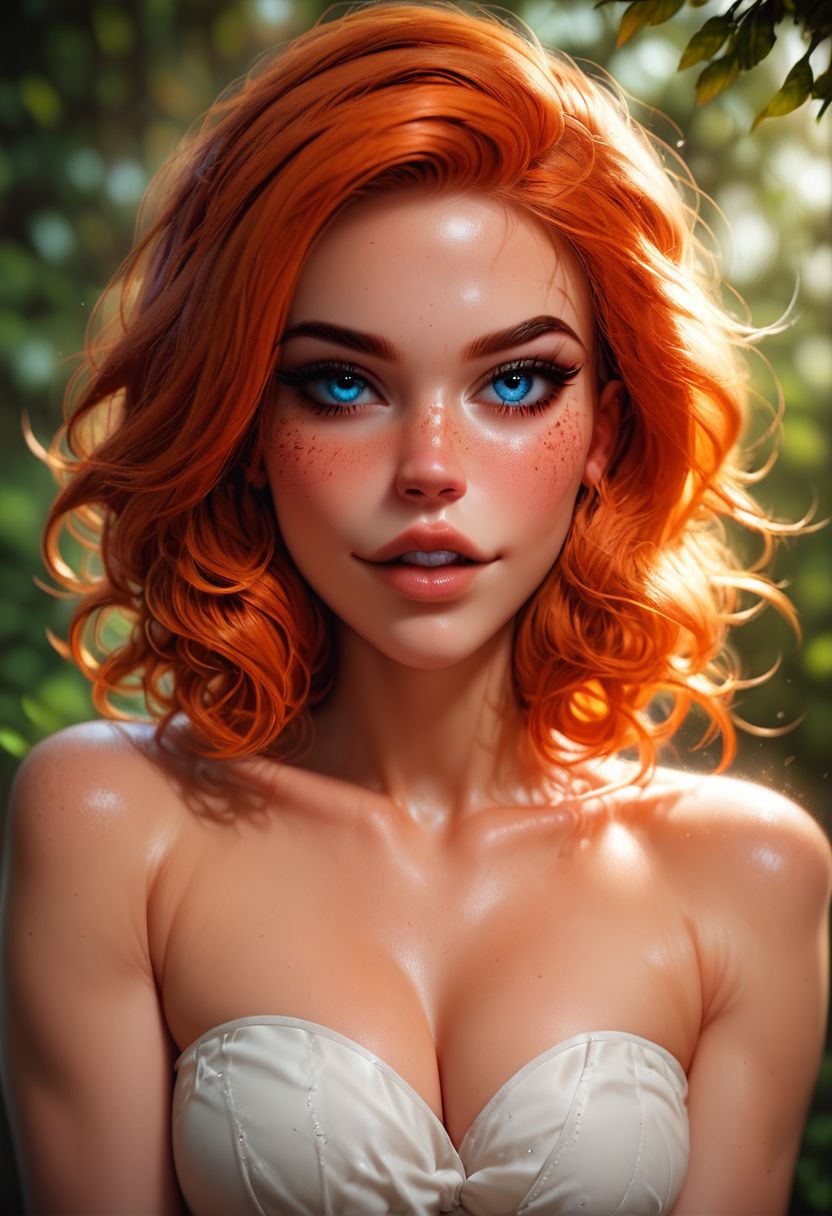 score_9, score_8_up, score_7_up,score_6_up,d4rk_g1ng3r, ginger hair, blue eyes,, sexy pose, cute pose, in the forest