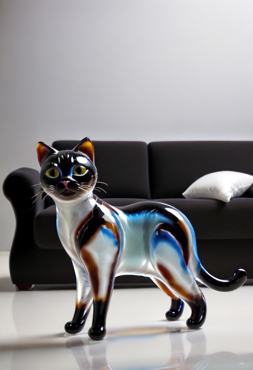 murano_glass_style, (livingroom:3), (cat murano_glass_style:2). (indoors:1.6), (large room:1.2).