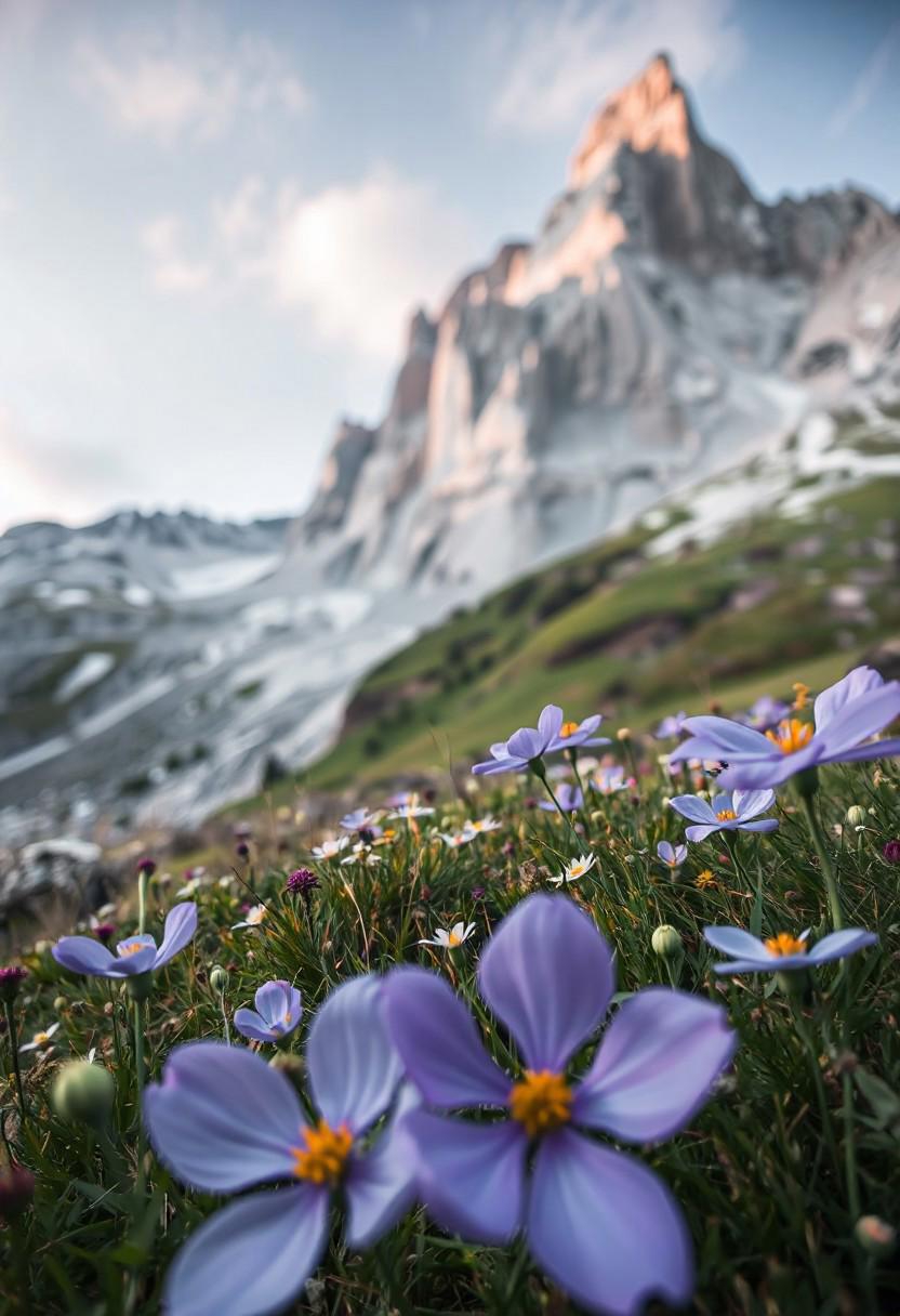 flowers in foreground,Alps by Max Rive.