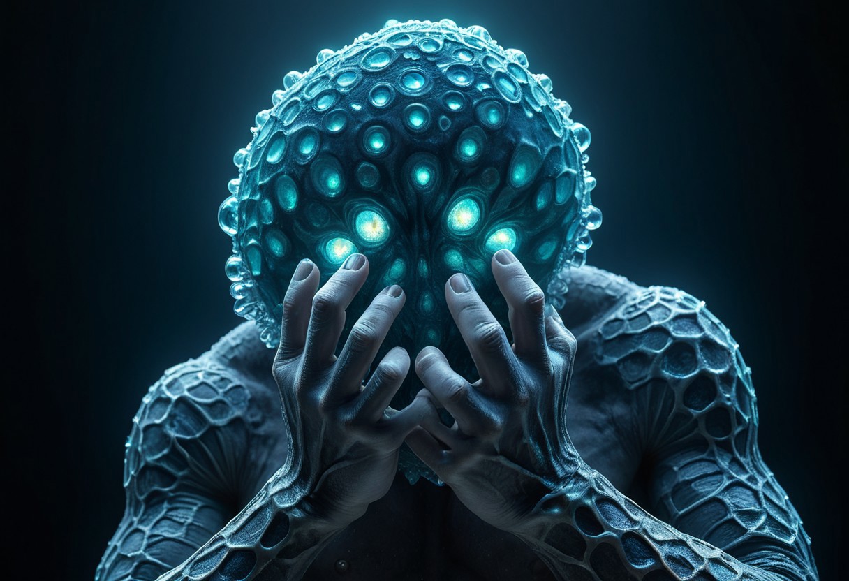 highly detailed masterpiece, best quality, absurdres, Deep sea angler fist covered in bioluminescent Voronoi patterns,dark background, deep sea,, national geographic photo, ,glowing, magicNpolished, light, very detailed, amazing quality, intricate, cinematic light, highly detail, beautiful, surreal, dramatic,