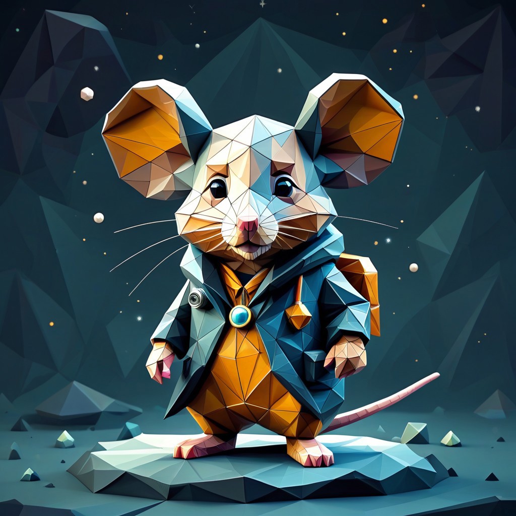 lazympos, DonMG30T00nXL,low poly art, geometric shapes, cute style, cute mouse dressed as a astronomer