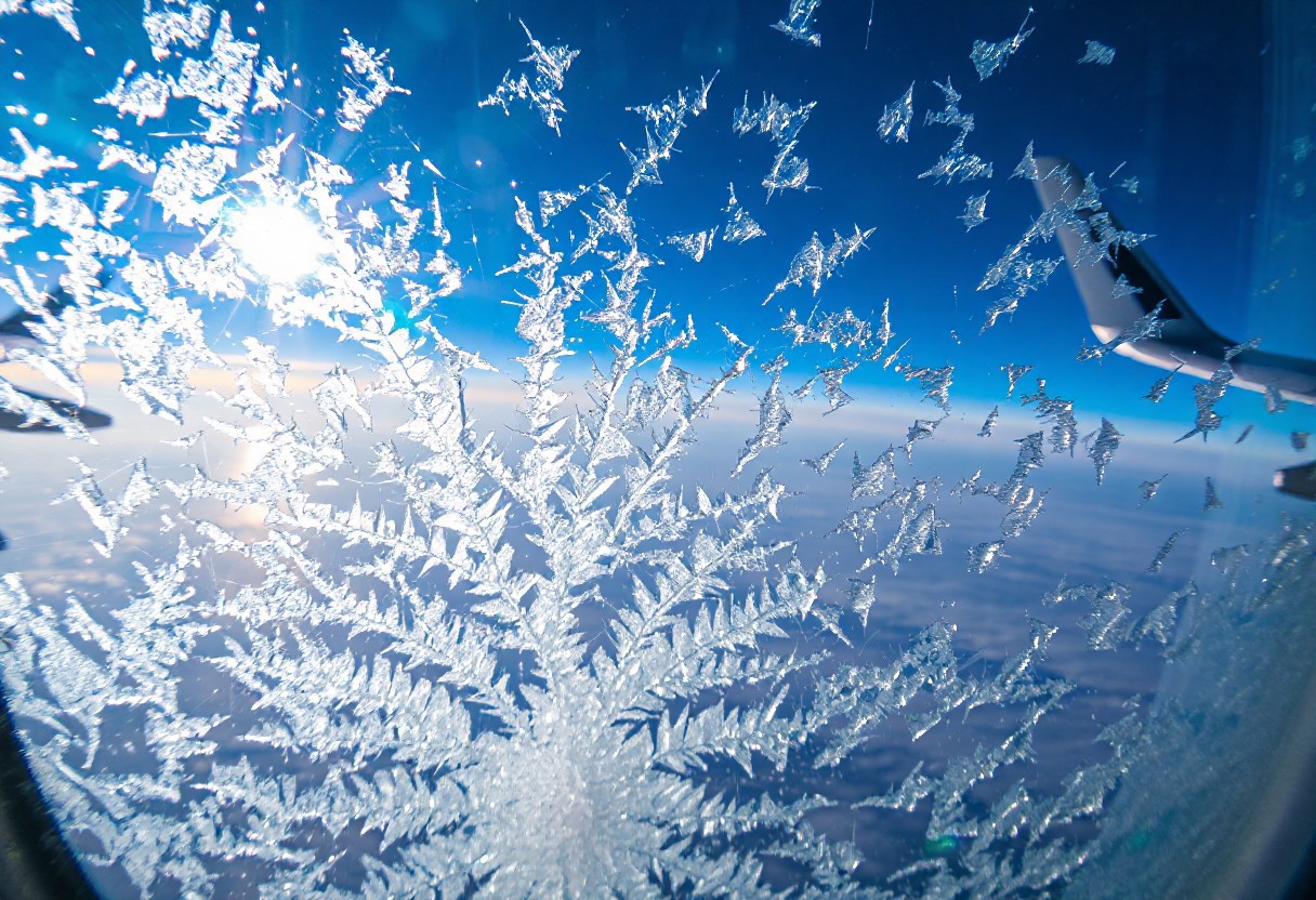 JNANX,luminous white silhouette,cyan glow,emerald highlights,flickering outline,dreamlike movement, "A close-up view from an airplane window reveals intricate ice crystals forming on the outer pane. The blue sky and a portion of the aircraft's wing are visible in the background, distorted slightly by the frosty accumulation. Numerous delicate, feathery ice patterns spread across the window, with a denser, more concentrated cluster at the bottom center, almost appearing to grow upwards. Sunlight reflects off the icy surface, creating subtle glints. The overall impression is one of cold beauty, showcasing the unique atmospheric conditions encountered at high altitudes. The textures of the ice are varied, from fine dust-like particles to more defined, branching structures, suggesting a dynamic freezing process. The window itself has some minor smudges or imperfections, adding to the authenticity of the aerial perspective."