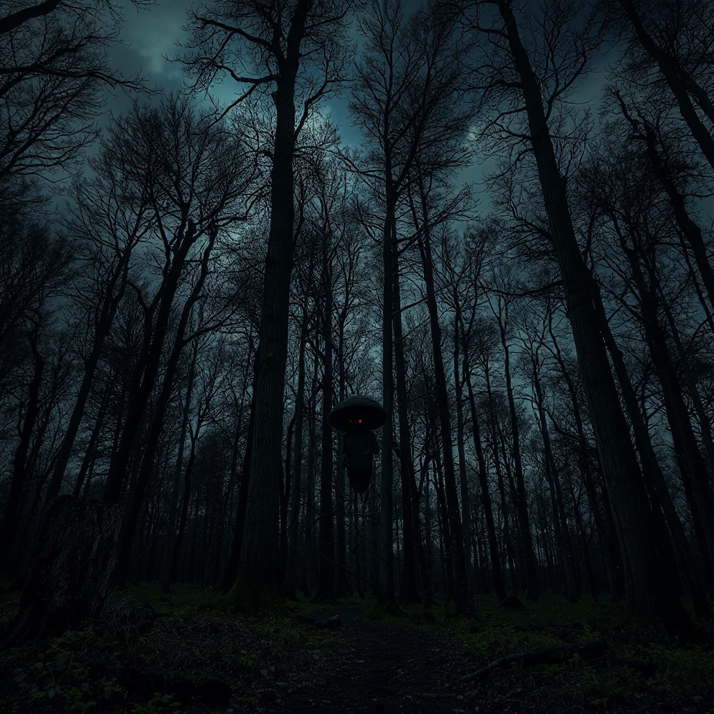 old, german forest with secrets and horrors lurking in the shadows, red eyes of monsters lurking in the darkness, mysticism of germany, night sky, stars and clouds, modernity