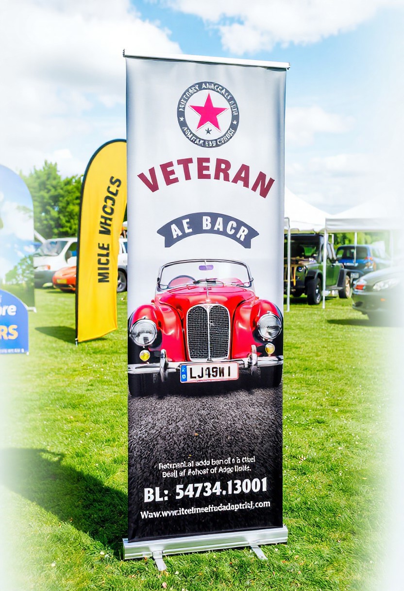 Showcase photo of a really awesome looking roll-up banner for a Veteran Amcar club
