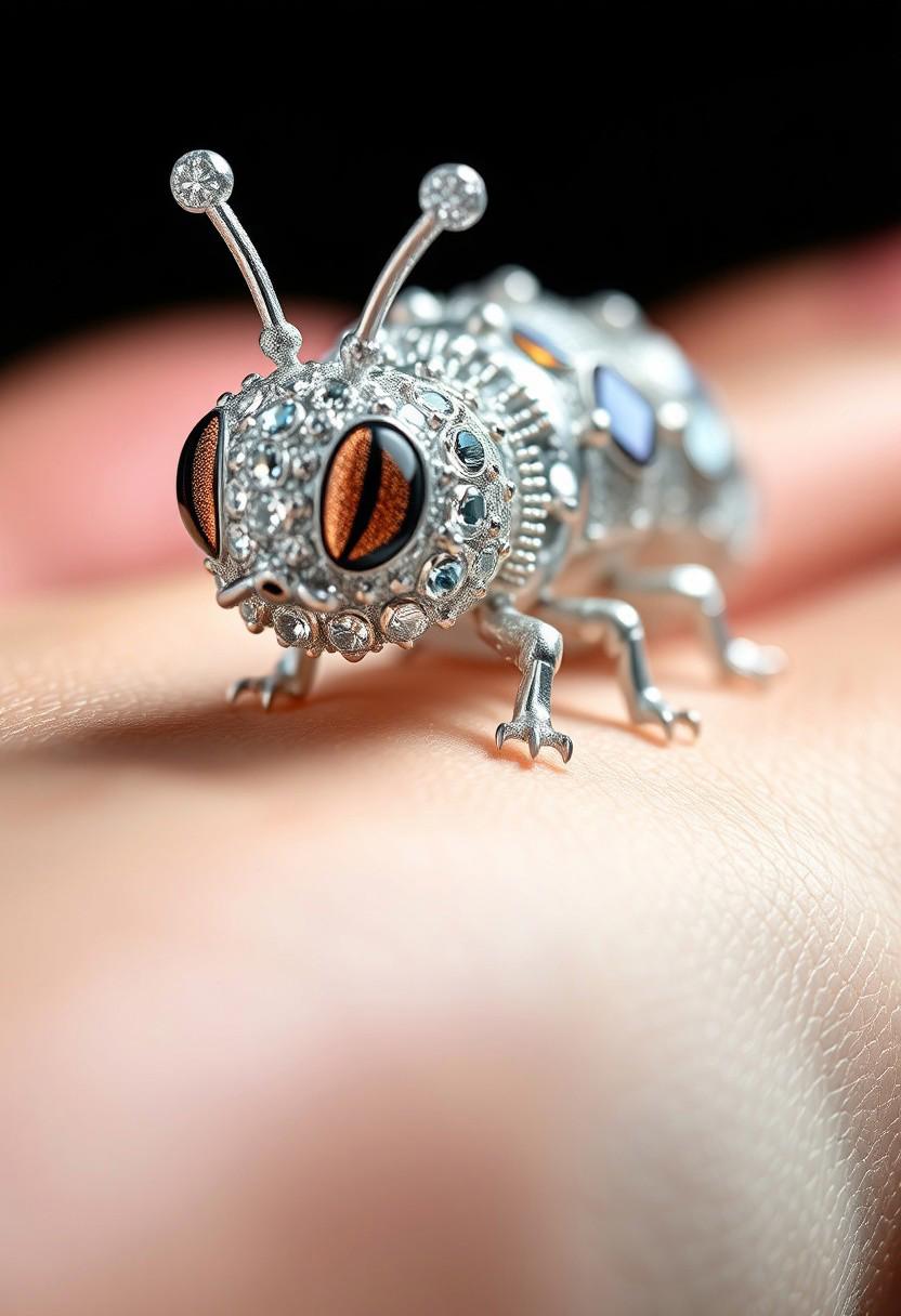 closeup photo of a cute caterpillar created from diamonds, crawling on a woman's hand, photo-realistic, sharp details, perfectly drawn eyes, (best quality:1.2), uhd, masterpiece, highly-detailed skin, ultra-realistic, (best render:1.4), sharp detailed facial features,
