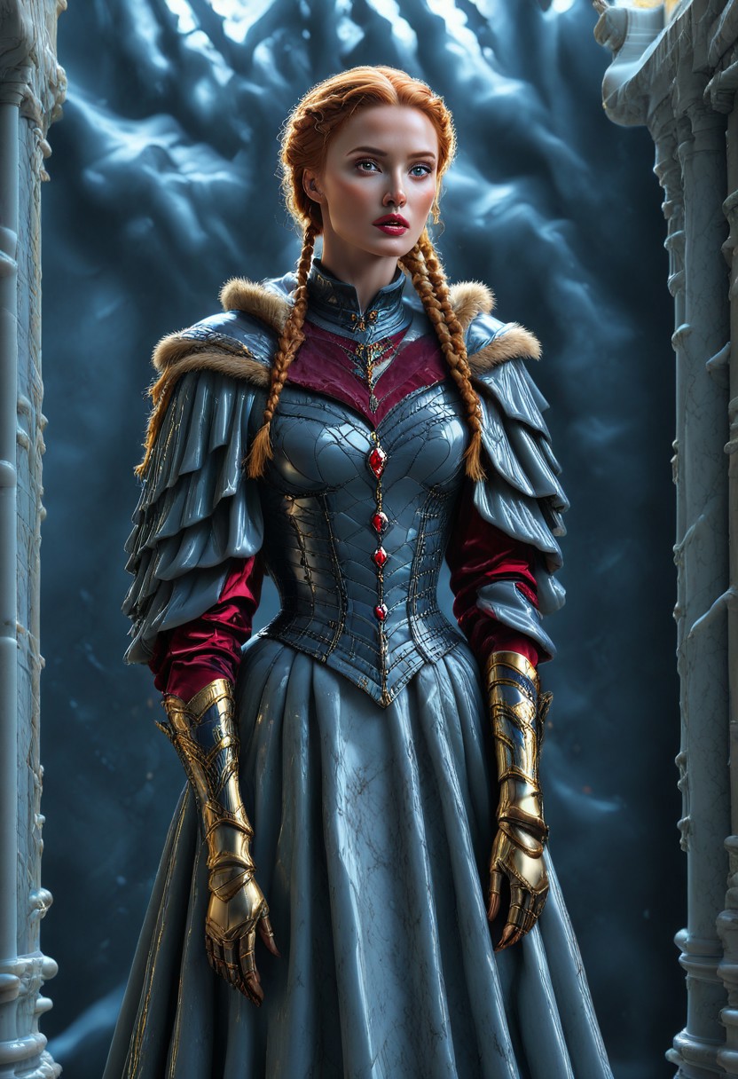 nbn-freyja, (marble background:2), indoors, standing, 1woman, solo, long hair, black choker, eyeliner, gorgeous lips, covered breasts, cinematic, best quality, ultra-detailed, very aesthetic, (natural eyes:1.4), freckles, aloof, (masterpiece:1.1), small waist, fitness body, wide hips, 32 years old, golden blond hair, censored, (big stained glass windows:1.4), (marble Victorian dress:1.6), (red ruby clothes:1.6), high end closure, Evil Queen, cinemascope, moody, epic, gorgeous, film grain, natural hands, red elbow gloves, knee boots, dramatic, ritual magic, freyja, auburn hair, braided hair, magic, Viking queen, mythic beauty, feathered cloak, fur, armor, robe, braid, rune jewelry, photorealistic, cinematic, flowers, jewelry, photorealism, cinematic lighting, high fantasy, mythic portraiture, soft background, northern folklore aesthetic, (fully dressed:2), (RAW photo), 4K, best quality, realistic, photorealistic, masterpiece, extremely detailed, an extremely delicate and beautiful, dynamic, realistic anatomy, candle lighting, perfect shading, professional shading, depth of field, perfect skin, gentle, highly detailed, breathtaking, clear skin, (marble clothes:2.6), 1girl, solo, braid, long hair, wide sleeves, hat, outdoors, hair over shoulder, brown hair, single braid, sash, brown eyes, long sleeves, (golden:2), (blue:2).