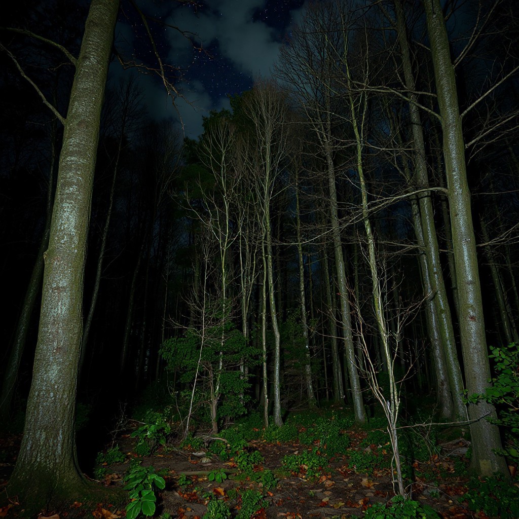old, german forest with secrets and horrors lurking in the shadows, red eyes of monsters lurking in the darkness, mysticism of germany, night sky, stars and clouds, modernity