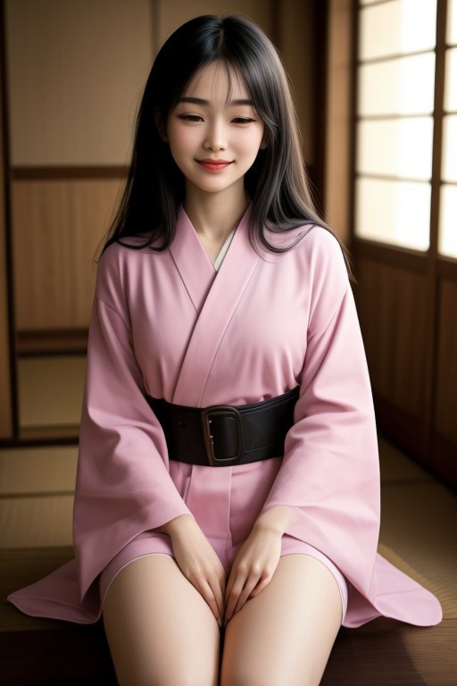 Zashiki Warashi: The legendary Japanese guardian deity of the family, usually appears as a little girl with long straight black hair, wearing a gorgeous pink kimono, a gold kimono belt, and geta, with her eyes closed and smiling, in a Japanese-style house. FHD, Rich in details, masterpiece, realistic style, canon 5D4.