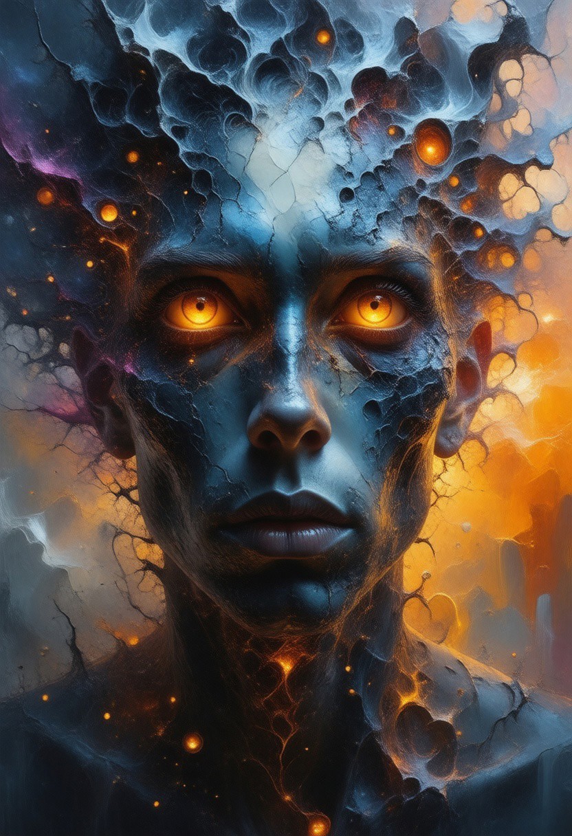 A beautiful dark chaotic mind of melting mayhem, wicked thoughts, by Yossi Kotler, Vivid portrait. The mind is represented by a swirling vortex of colors and shapes, with hints of recognizable objects and figures. The lighting is dramatic and intense, with a sense of impending doom. A masterpiece, best quality, 8k resolution, trending on Artstation, surrealism, expressive colors, powerful, impactful, atmospheric.