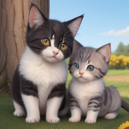 (Masterpiece:1.3), highest details, little dragon babies, lumbering, cute tiny cats, different fur colors, hearts, love, lovely, cute, sweet, feeling well, cats mom is watching the scene, spring or summer scene, no humans, bright lighting, shadows, shaded patterns, colorful, centered focus, depth of field, outdoors, sunny weather, blue sky,